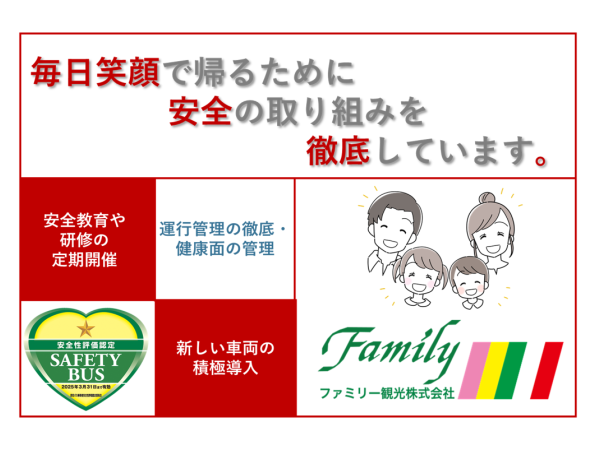 【教育研修がしっかり!】大型バスドライバー/遠方送迎・観光ファミリー観光株式会社
