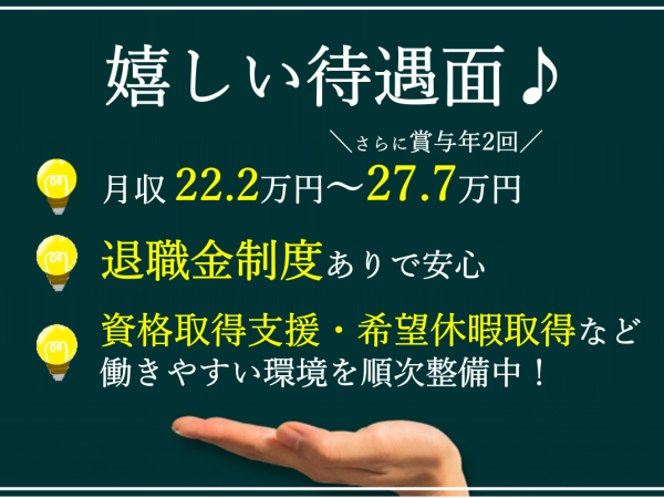 | 給与 | 月給 222,757円 ~ 277,900円 |