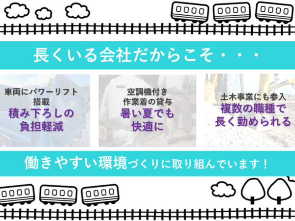 | 事業内容 | 市内で唯一の軌道工事会社で一関市内の公共工事を行っており、主に道路工事と河川工事を行っております。 【軌道部】 新幹線の軌道整備等 【土木部】 一般土木工事 |